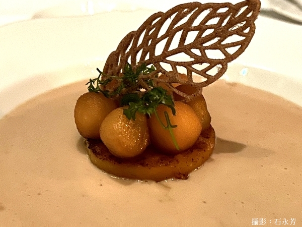 • 栗子濃湯 (Chestnut Velouté) — 烤南瓜、燉蘋果、胡桃餅乾脆片