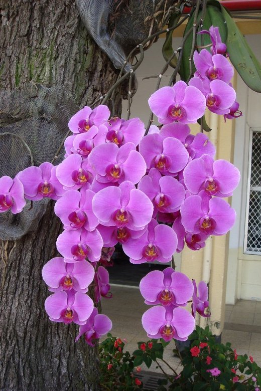 到底是那任校長興起的念頭,早只已不復記憶,只記得初開始總務處奉命將蘭花用釘子釘在樹上時,我著實的不悅,總覺得大樹又招惹到誰,平白無故被釘了好幾根釘子,如果它能出聲,想必已痛得呻吟了。