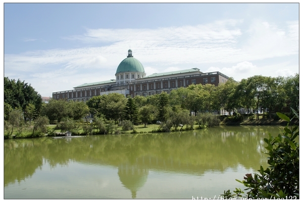 走到太極湖,正午時分,管理大樓投影在太極湖面上,一幅絕美的風景畫映入眼簾。2016年月,亞洲大學校園巡禮,藝術與建築、人為與自然的饗宴,與大家共享之。