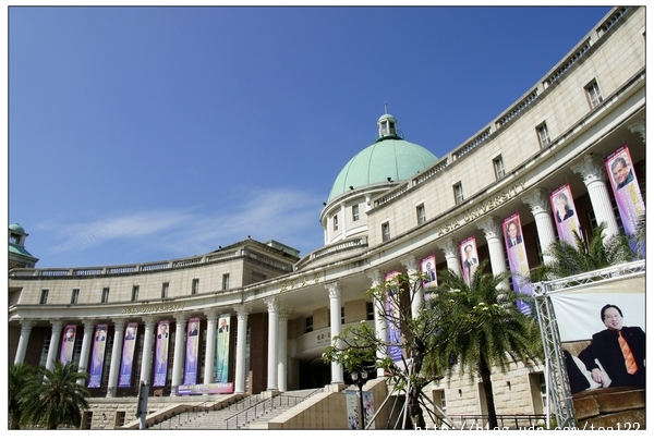 亞洲大學,號稱中部最美大學,因其獨特的建築風格,已然成為偶像劇、婚紗、廣告取景拍攝的最佳場所。行政大樓暨圖書館圓頂似宮殿的建築,半圓弧形壯觀的科林斯柱列,一種儼然在古希臘羅馬的氛圍,令人著迷。