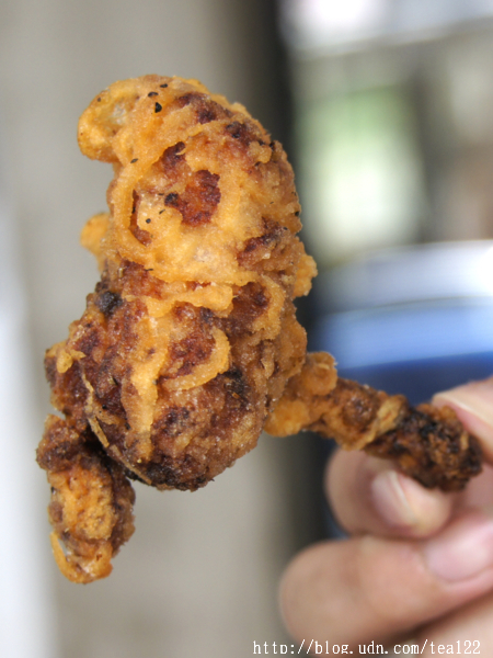 將雞腿切除腿骨,腿肉以獨家醃料醃製,現點現炸,外焦裡嫰,是下酒的最佳絕配,悠閒中享受著豪邁的痛快。
