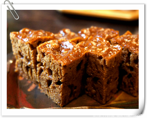喝茶,一定要配小點,這裡的黑糖糕好吃,鬆軟又不會太甜膩,和我專程去澎湖吃的黑糖糕不分軒輊;芋籤粿,無為草堂的芋籤粿有讓我驚豔到,往昔吃的都是沒有包饀的,所以,一看到這像蛋糕型的芋粿,就有些存疑了,果真切開一看,裡面有包像是油蔥糕的配料,非常香且可口。