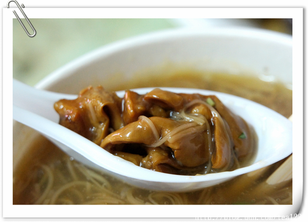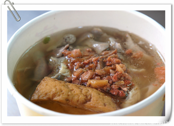 綜合麵的湯,本以為加了肉臊後會很油膩,不料,試嚐了一口,很清甜,反常的,我一口氣把湯喝了個底朝天。