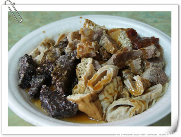有二人以上,則建議點一碗大腸蚵仔線,一碗綜合麵,外加一碟綜合拼盤,200元可以吃到台灣在地最傳統的古早味早餐,淡而無味的水煮隔間肉和內臟,搭配老闆娘獨門調製的辣味沾醬,既開胃又不死鹹。