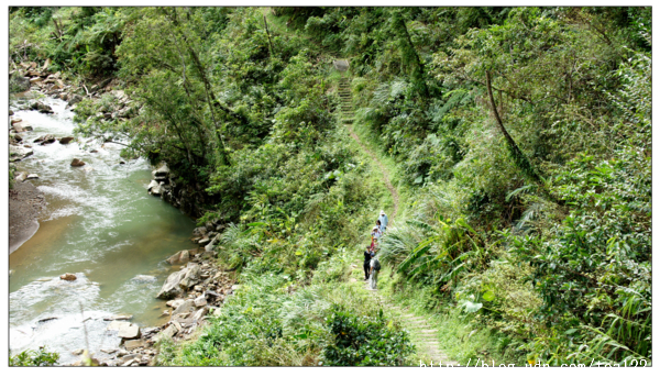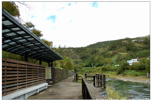 起身,驅車再往金瓜寮溪魚蕨步道行,沿途林蔭夾道,綠意盎然,自行車道規劃的完美至極,幾次張嘴,想要求停車,請導遊把車開至前方,讓我們一群老人緩步沿溪散步,還未開口,遠遠便見有二台小遊覽車的遊客已經在河邊齊步走了,可見,與我有同好者,不在少數。