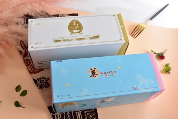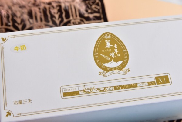 蓁古早味的伴手禮禮盒很漂亮耶~~是白色和金色的簡約線條,看起來乾淨又俐落,非常有質感