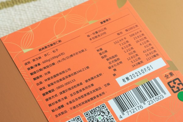 打開外盒後可以看到包裝工整的黑芝麻杏仁粉包