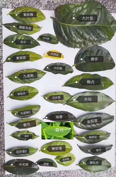 #武夷水仙:屬半喬木型,葉片比普通小葉種大1倍以上,因產地不同,同一品種製成的青茶,如武夷水仙,閩北水仙和閩南水仙,品質差異甚大,以武夷水仙品質最佳。