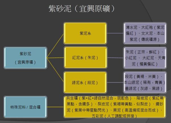 ◎ 紫砂泥料系統~三大基本系(傳統礦物分類)