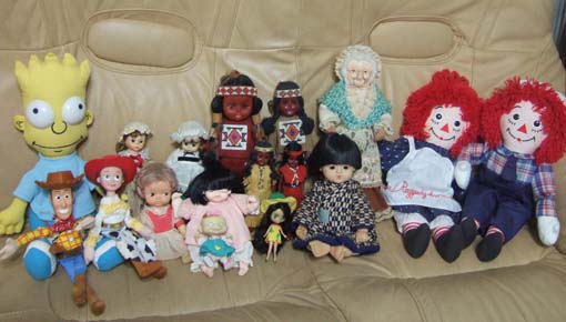我現在擁有的娃娃,少數是出國買的,大多數則是大姐陸續從美國寄來的.我知道自己是個挑剔的人,偏愛的娃娃都必須〔醜〕得很可愛.看著這些從異國飄洋過海的娃兒,感謝它們連結著我與姊姊的情誼...
