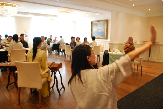 中國茶文化 瑞士鮮體驗 2008/06/13 【人間社記者元義琉森報導】 「原來喝一杯茶有這麼大的學問!」在台灣,茶藝隨處可見,但在歐洲,卻不簡單;尤其是將茶與禪、樂結合的茶文化,並非住在歐洲的居民容易看到。「日日是好日、茶禪在歐洲」巡迴活動,第二站到瑞士琉森市區的Hotels des Balances,六十餘位各國人士先焚香供佛後,進入茶禪一味。 在茶香漫溢、琴音繚繞的氛圍下,隨著金春枝老師的茶文化分享,茶禪行者的示範中,讓大家知道分辨茶色、茶香、茶味,也聽聞茶與音樂,與國畫,與中國文化的關係。歐洲地區總住持滿謙法師則開示,茶禪與日常生活息息相關,有禪心則日日是好日。 與會者有人感動得喜極淚下,有人則藉茶禪,讓平日被工作壓力得以鬆弛。「原來喝一杯茶有這麼大的學問!」佛光青年團團長Amy表示,以往喝茶就是喝茶,經過這兩個小時的洗禮,對「喝茶」有另一番認識。