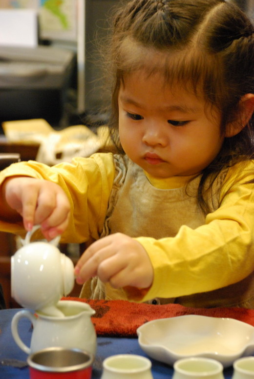 二、泡茶的茶主人都是孩子,從最小的2歲到最大的大四22歲。且茶會點心與