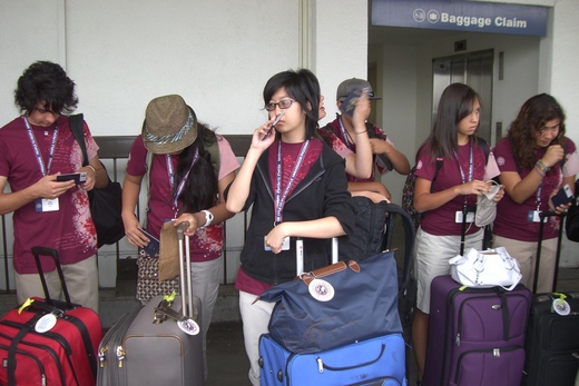 昨天一早送ㄚ頭去機場, 這訪問團來帶團的老師共37人, 再加上送行的父母親家人, 我們大約有近百人擠在機場團體check in counter, 我們陣容龐大後來得的機場門口點名,報數, 發護照, 家長們也紛紛被請出機場"小"廳, 在外等後.