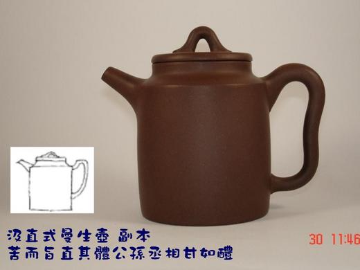 曼生十八式,是典型的紫砂壺集大成者,傳世曼生壺,無論是詩,是文,或是金石、磚瓦文字,都是寫刻在壺的腹部或肩部,而且滿肩、滿腹,佔據空間較大,非常顯眼,再加上署款曼生、曼生銘、阿曼陀室、或曼生為七薌題等等,都是刻在壺身最為引人注目的位置,格外突出。