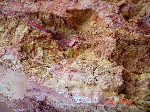 趙莊紅泥礦土外觀呈磚紅夾色與硃砂色,以粘土為主的粉砂岩土,可單獨成陶。