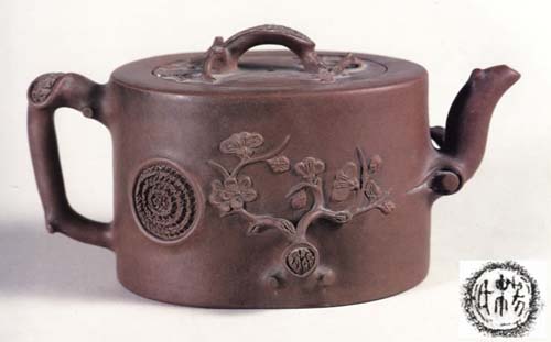 鈕、把、嘴皆作梅枝形。色呈暗紅,泥質細密。