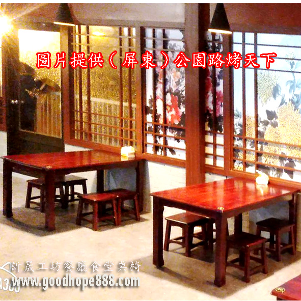XinChen studio 【客戶分享~(唐韻)實木創業開店餐廳桌椅/實木生意商用生財桌椅/實木古早味食堂桌椅/實木傳統小吃桌椅】●屏東縣屏東市公園路【烤天下】