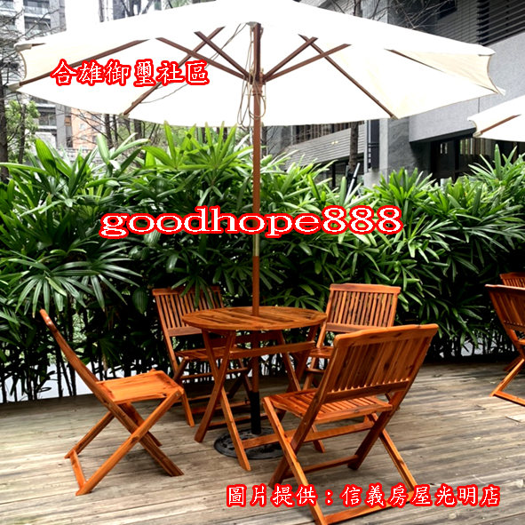 XinChen_studio【客戶分享~(實木)戶外休閒咖啡桌椅/實木園區餐廳休閒桌椅/實木農場民宿休閒桌椅/實木社區花園休閒桌椅】●【桃園蘆竹合雄御璽】【信義房屋南崁光明店】