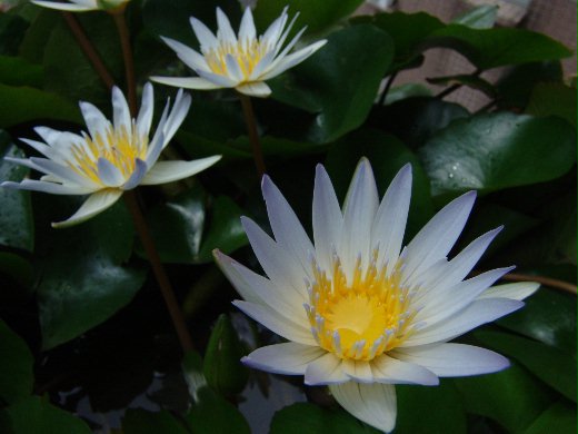 秋天了,陽光特別耀眼,風有點涼,陽台上的蓮花卻特別茂盛,不但長出片片厚實油亮的葉子,一口還開了十朵潔白的蓮花,每天晨起,總愛盯著他們瞧,希望洗去心中紛紛擾擾的憂愁
