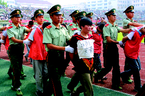 上圖:西安一次處理36名涉毒人員,包含毒販與包庇毒販的公務人員,公開槍決