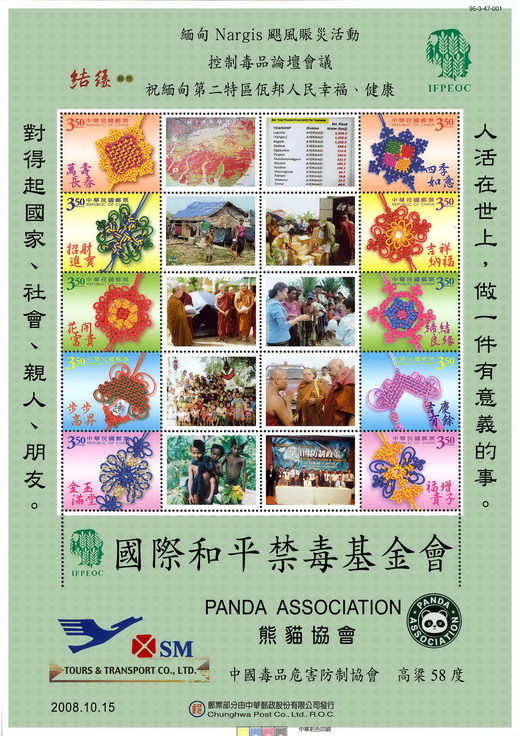 這是一件非常有意義的事情,也熱情的邀請善心人士共襄盛舉。由加拿大國際和平禁毒基金會援助緬甸受風災地區中、小學重建計畫專案組所主導的『聯合國毒品及犯罪辦公室』紀念郵票義賣,將在