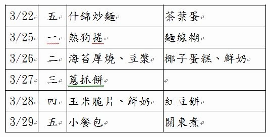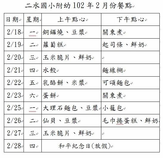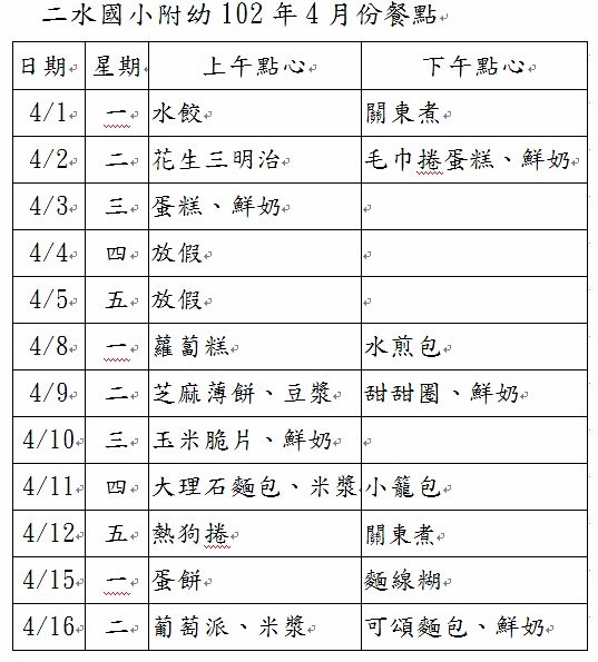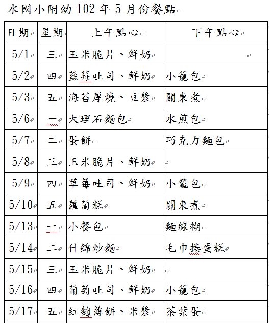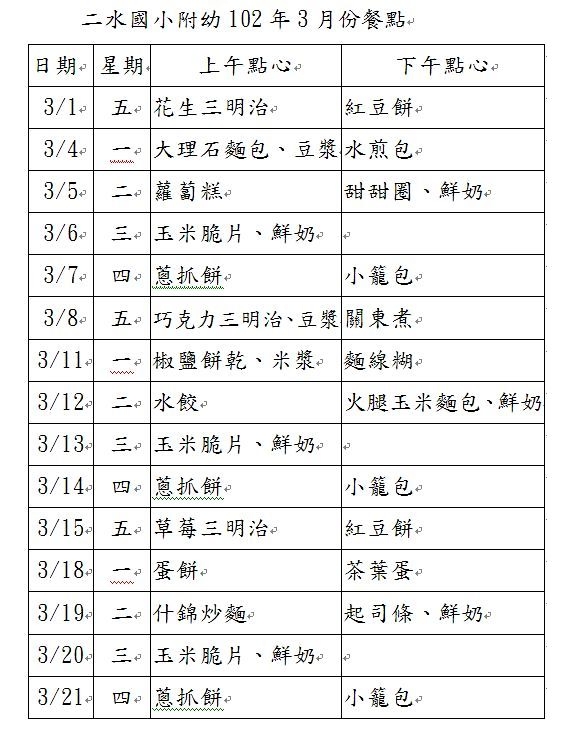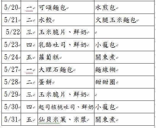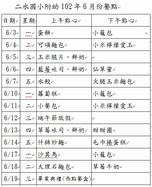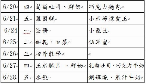 101學年度幼兒餐點表(新增6月份)