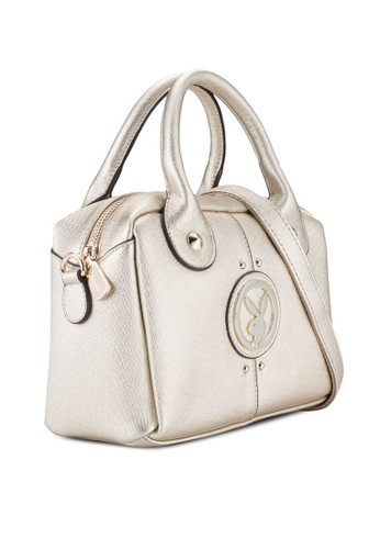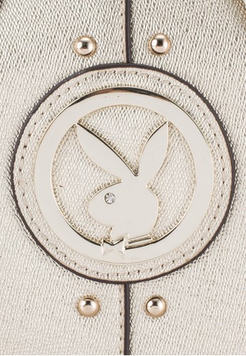 PLAYBOY BUNNY 的立體仿皮手提包,採仿皮材質打造立體包身結構,有燙金品牌標誌配以肩背帶設計,讓你背出秋季時尚。