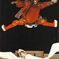 (朋友為包袱巾所繪的油畫,2012年2月國父紀念館畫展)