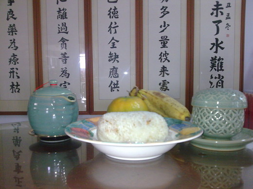 原來為了節省,她把幾天前拜拜的拿去回鍋蒸,又給我們吃.