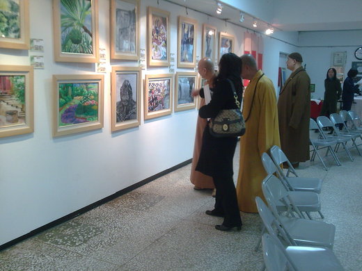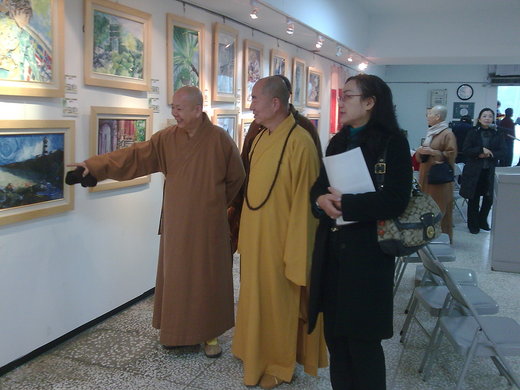 (記者莊米期報導)紐西蘭奧克蘭觀音道場開山住持釋福恩法師,遠道而來於縣文化局文馨畫廊展出其花費5年時間所繪之油畫作品─「觀世音菩薩33應身」,並於昨日上午正式開展,縣長、議長及地方政壇人土聯袂出席,堪稱冠蓋雲集,共賞佛光普照之畫作。