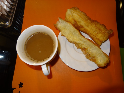 印尼油條裡面比較軟實,用印度咖啡沾濕了吃.