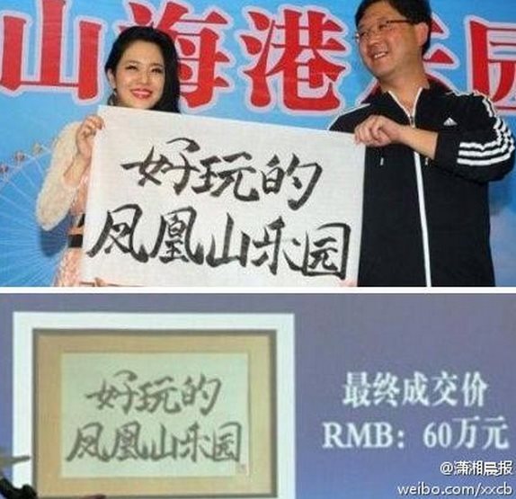 前AV女優蒼井空勤練書法,並經常將作品放上微博與粉絲互動,傳出她寫「好玩的鳳凰山樂園」無深度意境的字畫在寧波拍賣會競標,卻有90後的富二代甘願掏出近300萬元台幣購買,令人匪夷所思。