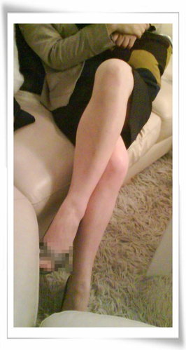 女人自然、優雅的變換著坐姿,窄裙中的春光依稀可見,