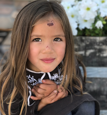 至於這張照片中她額頭和鼻樑上的色彩,並不是您以為的貼紙或飾物,而是破皮快要長好之前的血蓋子;如今已完全長好如初了,呵呵...