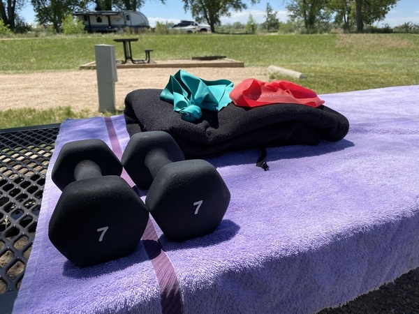 這是老公幫我在GoodWill舊貨店裡找到的兩個七磅重的啞鈴;