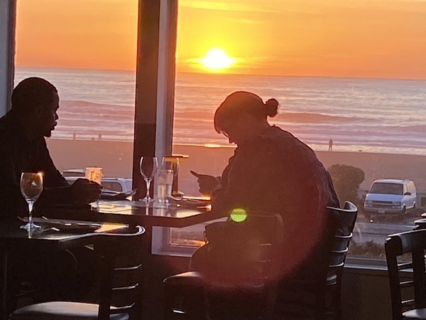 唉呀!這麼美的海景與落日、美好的音樂與美食,只缺一顆共賞的心,真是可惜了。