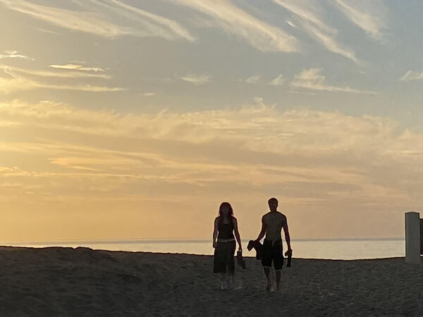 當時這一對年輕人正在溫柔的夕陽餘暉中、遙遠地向著我迎面而來...