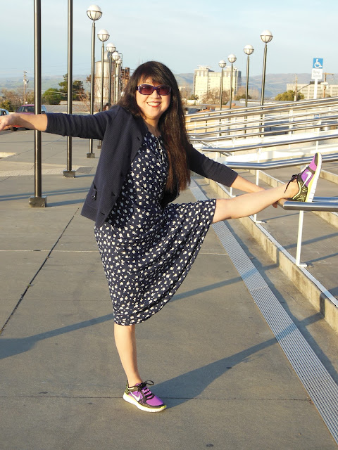 趁著時間還早、H. P. Pavilion 大廣場前面空無一人,我一面伸腿拉筋,一面享受聖荷西下午美好的三月陽光。 順便,不忘展示一下我漂亮的新球鞋。