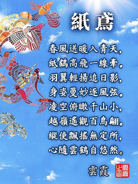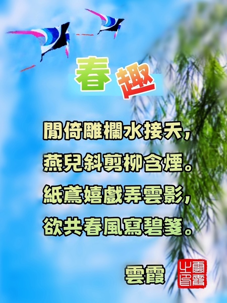 紙鳶嬉戲弄雲影,欲共春風寫碧箋。