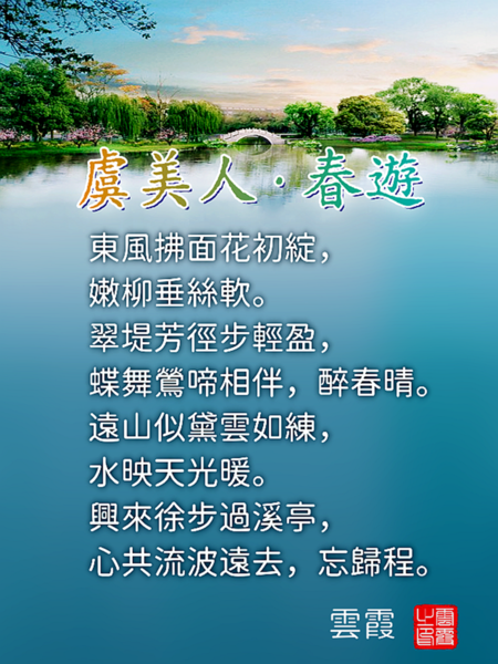 分享【音韻墨舞】出品。感謝王育梅老師推薦,《創意工作坊》鄒聖因老師精心製作,《音韻墨舞》製作人大普老師出品,並由王育梅於YouTube推出,向三位老師深致謝意!敬請雅賞!《雲霞古韻詩詞專輯》