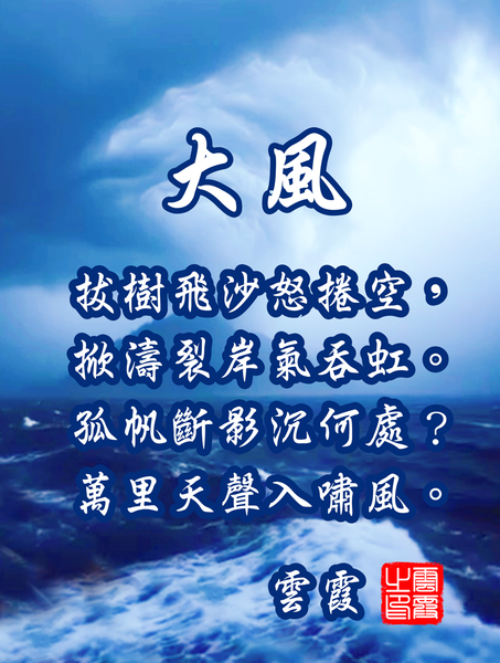 拔樹飛沙怒捲空,掀濤裂岸氣吞虹。