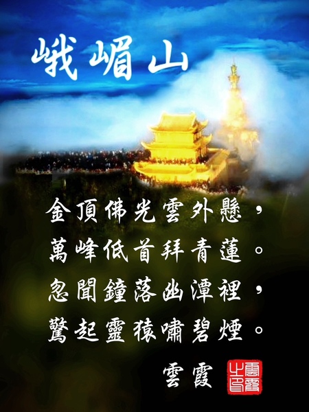 金頂佛光雲外懸,萬峰低首拜青蓮。