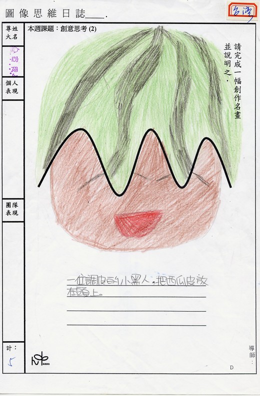 他們會做的只是,填滿這張紙上其他空白的地方,他們的思考力、創造力,完全被這一條黑線限制住了,只會在黑線的框框裡打轉。更奇妙的是,每張填滿繪畫的內容,似乎都是千篇一律的太陽,房屋,樹木等基本畫法,不僅讓人質疑他們是否是同一家補習班教出來的,更不用說他們其實皆來自不同的學校與區域。