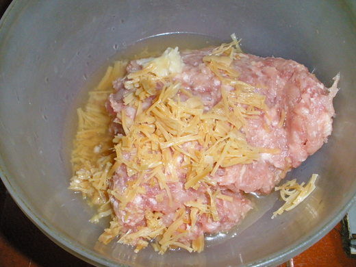 1.雞、豬肉各半剁碎