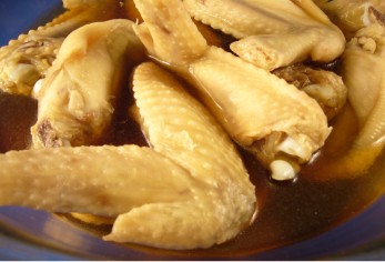熄火蓋緊鍋蓋,燜10分鐘取出,浸冰水中。必須浸到整隻雞翅