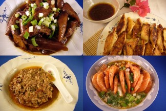 左上圖:魚香茄子 右上圖:曹白魚辣椒酥餡鍋貼
