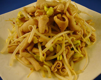 涼拌黃豆芽,好味道又健康,它是素的。偶爾買得到生鵝腸,芭比便拿它和黃豆芽一起拌,變成一道涼拌的葷菜,味道一樣很棒。只可惜鵝腸非常難買,大部分被鵝肉店蒐購光了,如果格友幸運買到一份,可以像芭比這麼調理,保證回味無窮!