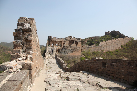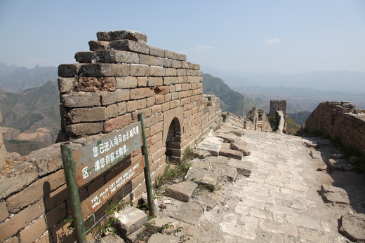 長城歷經數百年的歷史滄桑與戰亂,刻劃著中國人禦敵的血淚史,和激勵人心的英勇事蹟,沿途雖是殘破的牆磚(下圖一),但它的精神卻是永在。