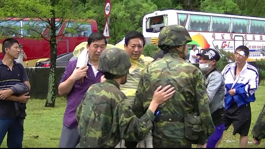 三十多歲年輕媽媽曹藝,抱著飽受驚嚇的五歲獨子周曹國然,見到直升機前來救援,當時大家激動,五歲男童心有餘悸,在醫院依著媽媽身邊輕聲地說:「好想早點回家(大陸)喔!」