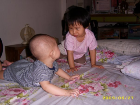 姊 : [ 屁啦! 你連走路都不會還想保護我 ? 爬好一點自己不要跌倒就